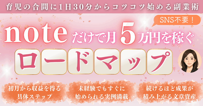 【SNS不要!noteだけで月5万を稼ぐロードマップ】初心者でも1日30分で収益化につながる副業術を実例満載で徹底解説!